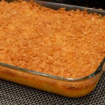 When crushing the corn flakes, I put them all in a large Ziplock bag and crushed them with my hands. It’s kinda fun actually! ;) The sautéed corn flakes gave the perfect crunchy crust on the top. We had a little left over from the party, took it home, but it was gone by bed time. Ha!