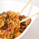 So this is a completely random recipe that Greg came up with the other night. After seeing these new age Ramen recipes (Ramen burger?!) on TV and on the internet, we’ve been meaning to make some. We’ve had all these Ramen packages in our pantry that we haven’t touched in months. So I finally got him to cook us some up. Naturally we didn’t want to go to the grocery store (we’re making Ramen noodles after all), so we had the kind of scrounge around to find what we wanted to use in or on our noodles. Fun fun!