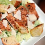 Tonight (Sunday), we had enough dressing left over to make THIS pan-fried chicken Caesar salad for dinner. We bought some chicken. Greg grilled chicken for his salad (he’s on a health kick). I chose to pan-fry my chicken just to get it all crispy. Because who doesn’t love some crispy chicken! ;)