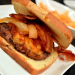 This burger is one of the best we’ve ever tried. A combo of onions cooked in hot sauce, shredded smoked gouda, sweet barbecue sauce & toasted buttered bread — how can you go wrong!! Inspired by Food & Wine Cookbook, recipe by Brian Perrone.